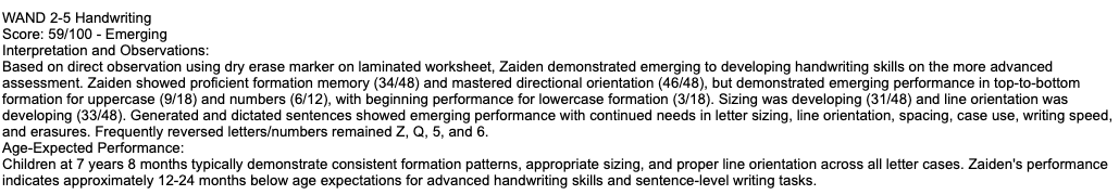 Magic WAND Handwriting Assessment, PK-5th Grade, V2
