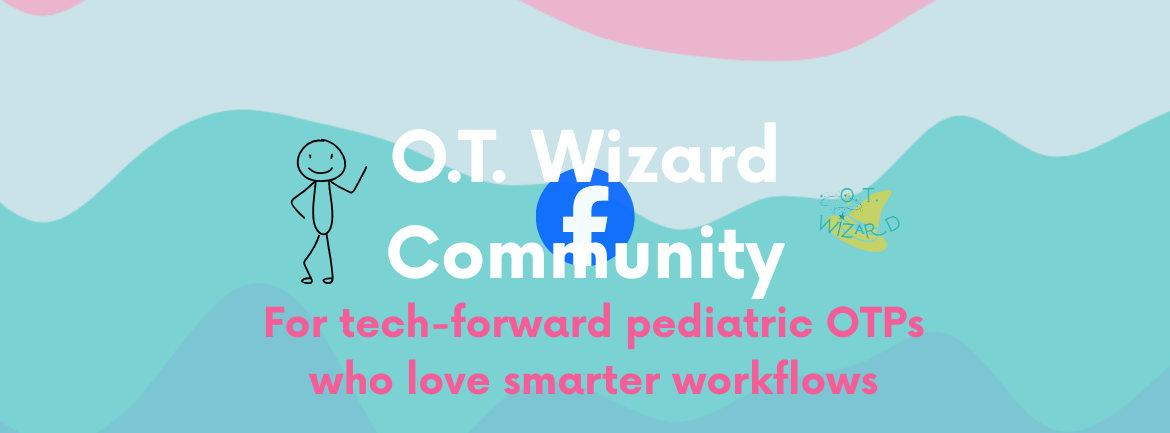 FB group "O.T. Wizard Community" which is a private group where pediatric OTP's share time-saving strategies, evaluation tips, resources, activity ideas, and real-life OT wins.