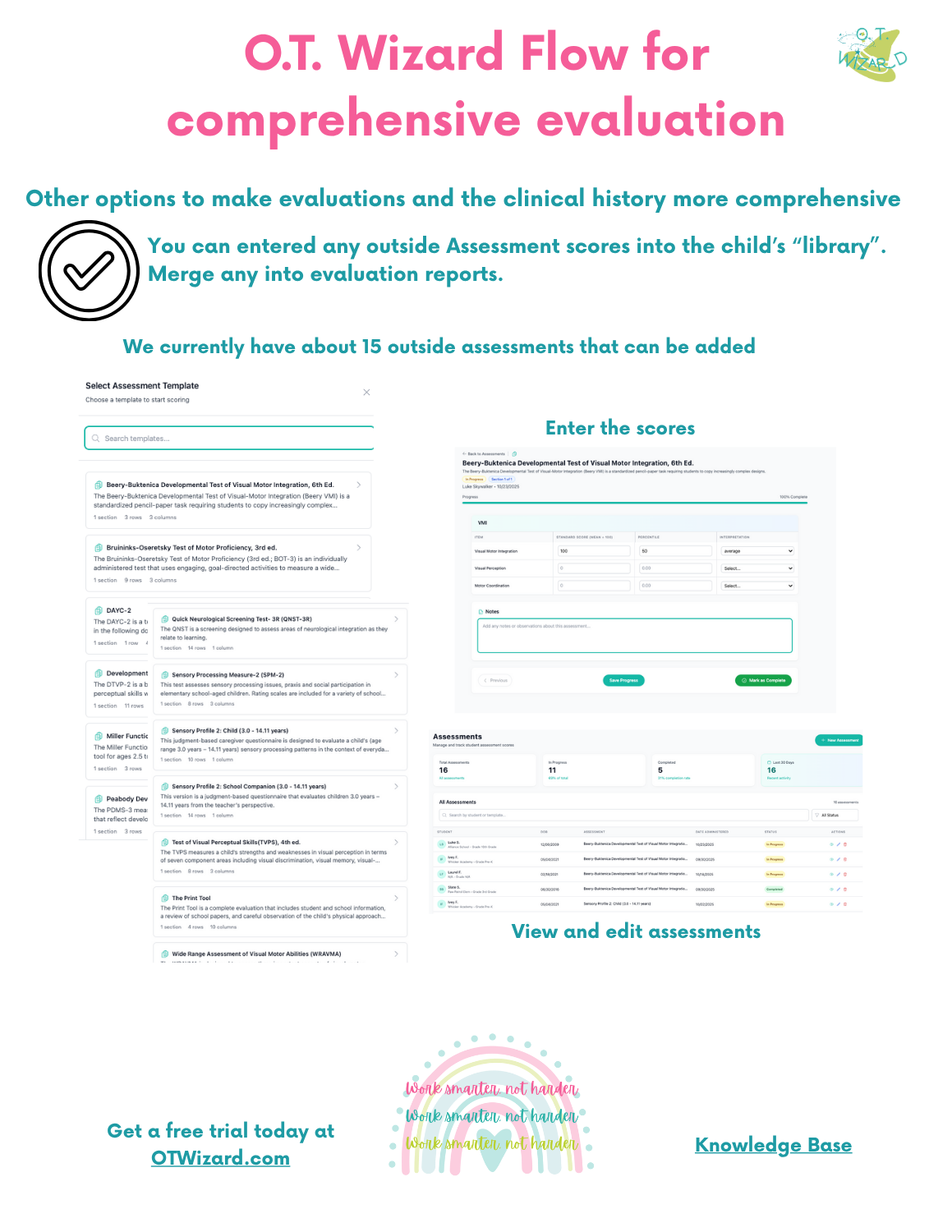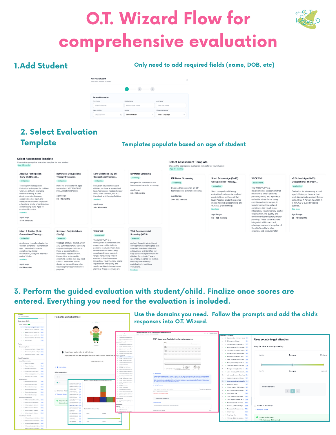 OT Wizard doesn’t just improve individual documentation — it elevates entire OT teams. From clinical reasoning to efficiency to inter-rater reliability, OT Wizard is built to help teams work smarter, safer, and more consistently. 1. Standardization ...