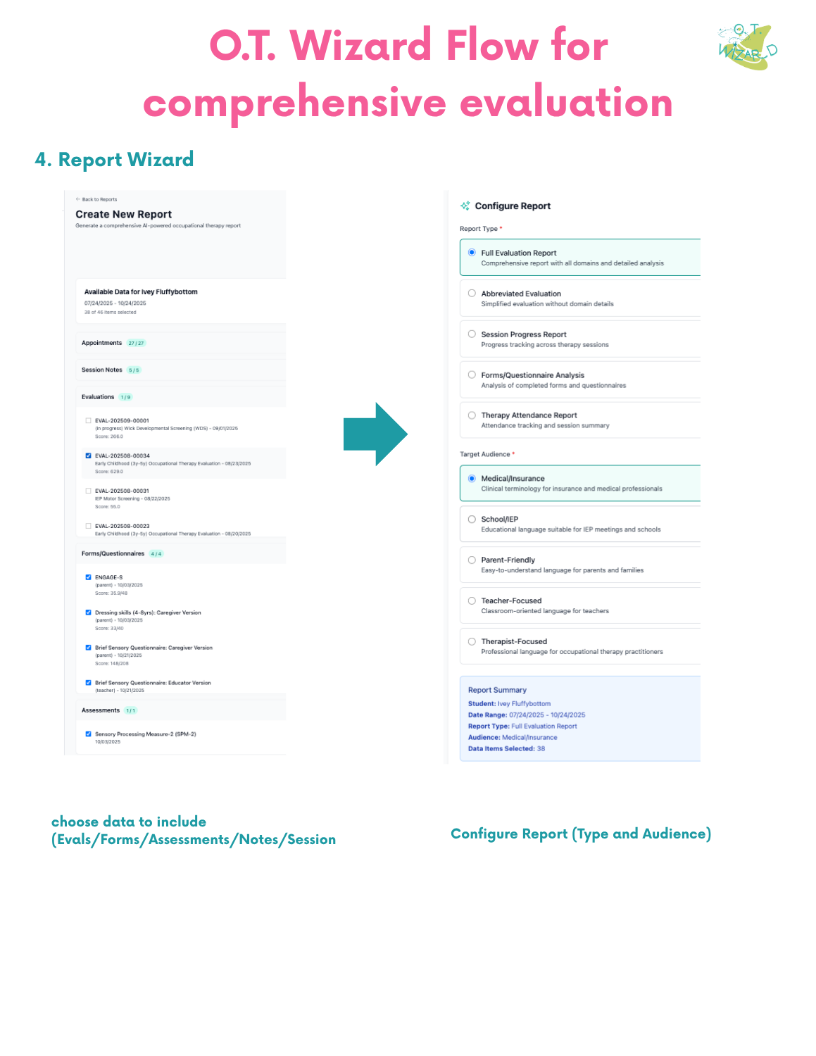A visual overview of how to create an evaluation in O.T. Wizard