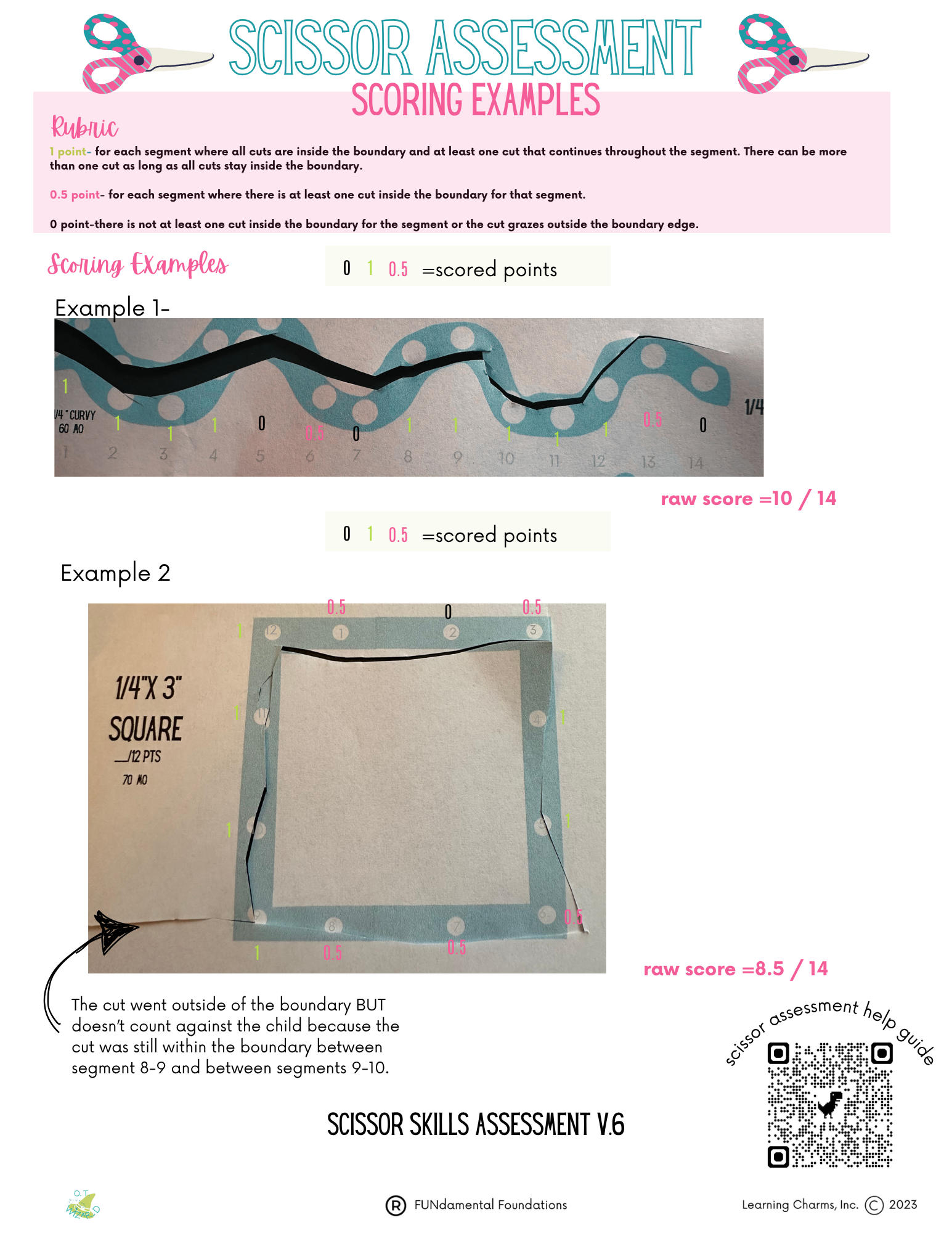 Welcome to the Scissor Skills Assessment! This tool is designed to track scissor cutting accuracy in children using age-based cutting lines. Use this quick-start guide to ensure scoring consistency and fidelity.